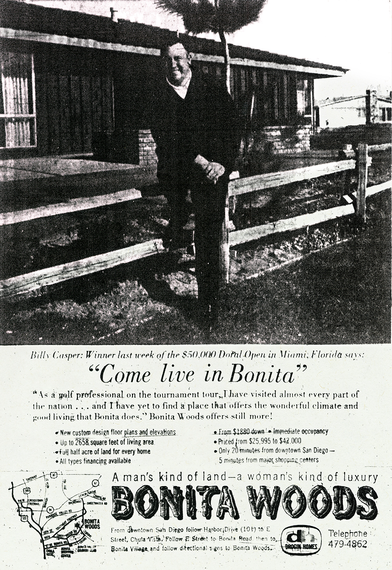Billy Casper’s home was directly across the valley from Bonita Woods on a hilltop. So it was a quick drive for him over to Bonita Woods for this photo shoot.