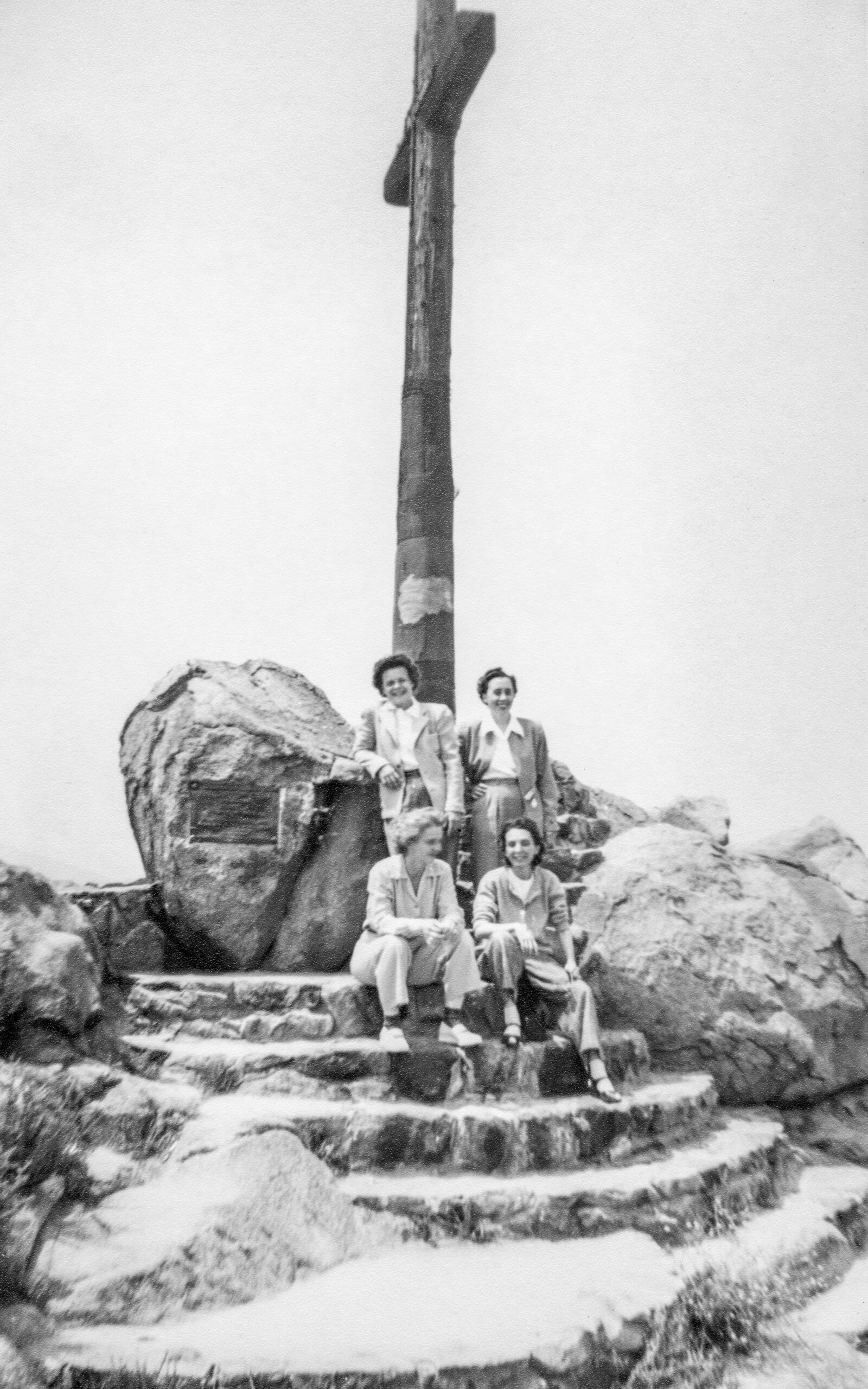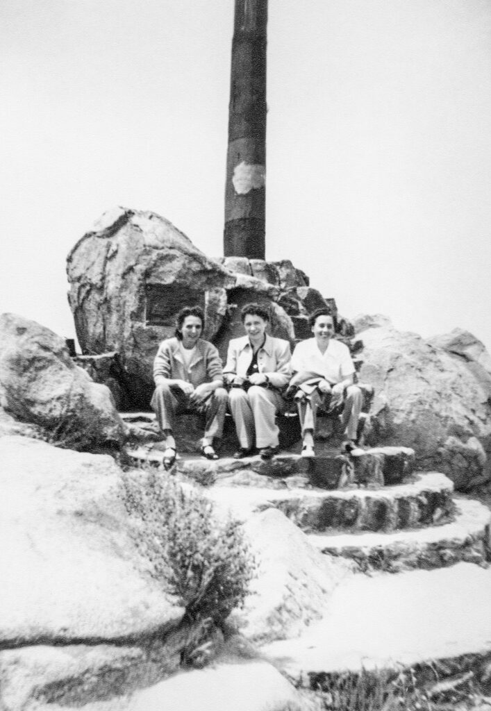 A set of black and white images to follow from the late 1940’s. A group of women stopped here on a road trip. Notice the automobile access on Huntington Drive. Strictly foot traffic nowadays.