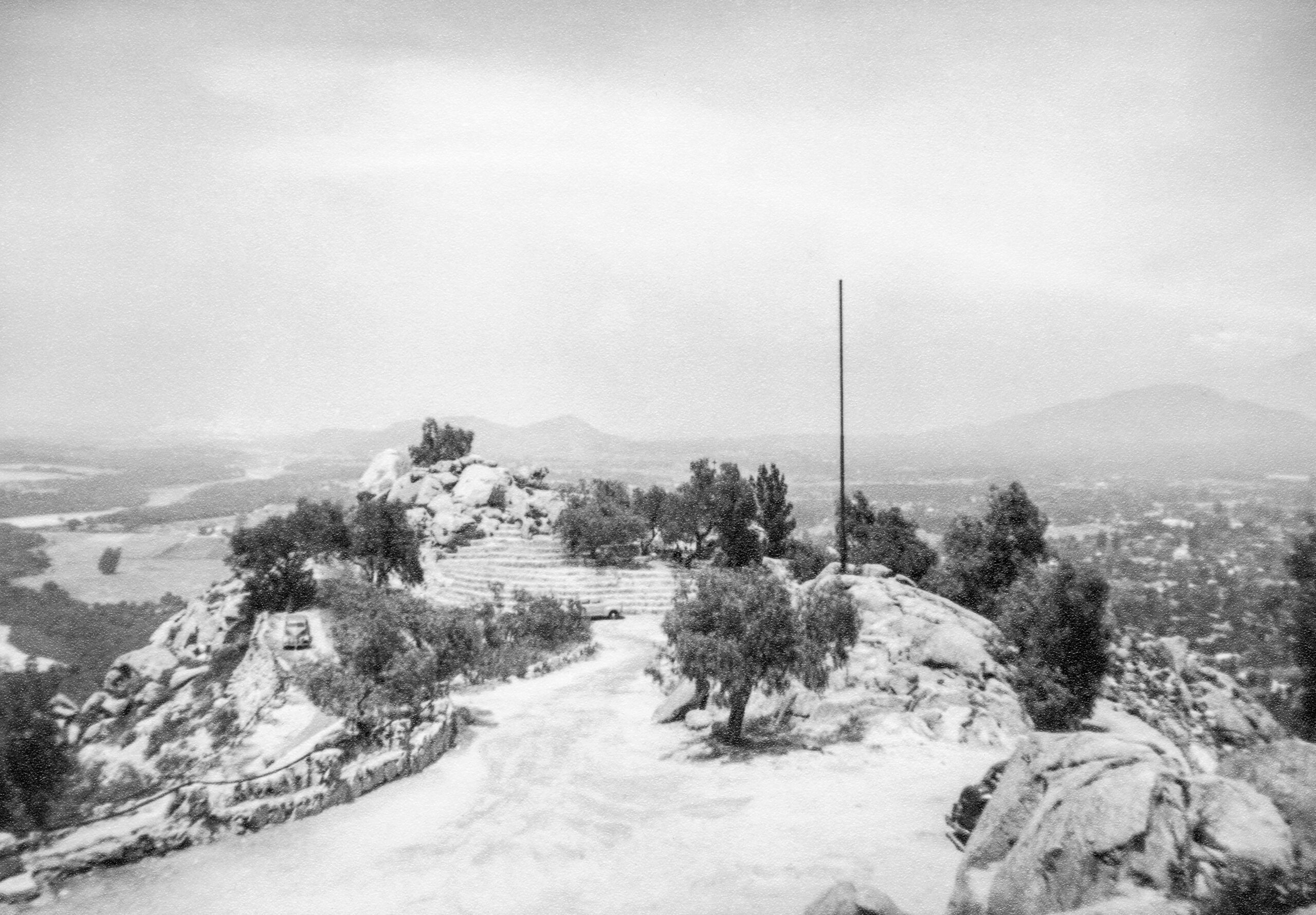 The original wooden cross at the summit honors Father Junipero Serra, and was dedicated on April 26, 1907. Serra supposedly often travelled through the valley and rested at Rubidoux Rancho