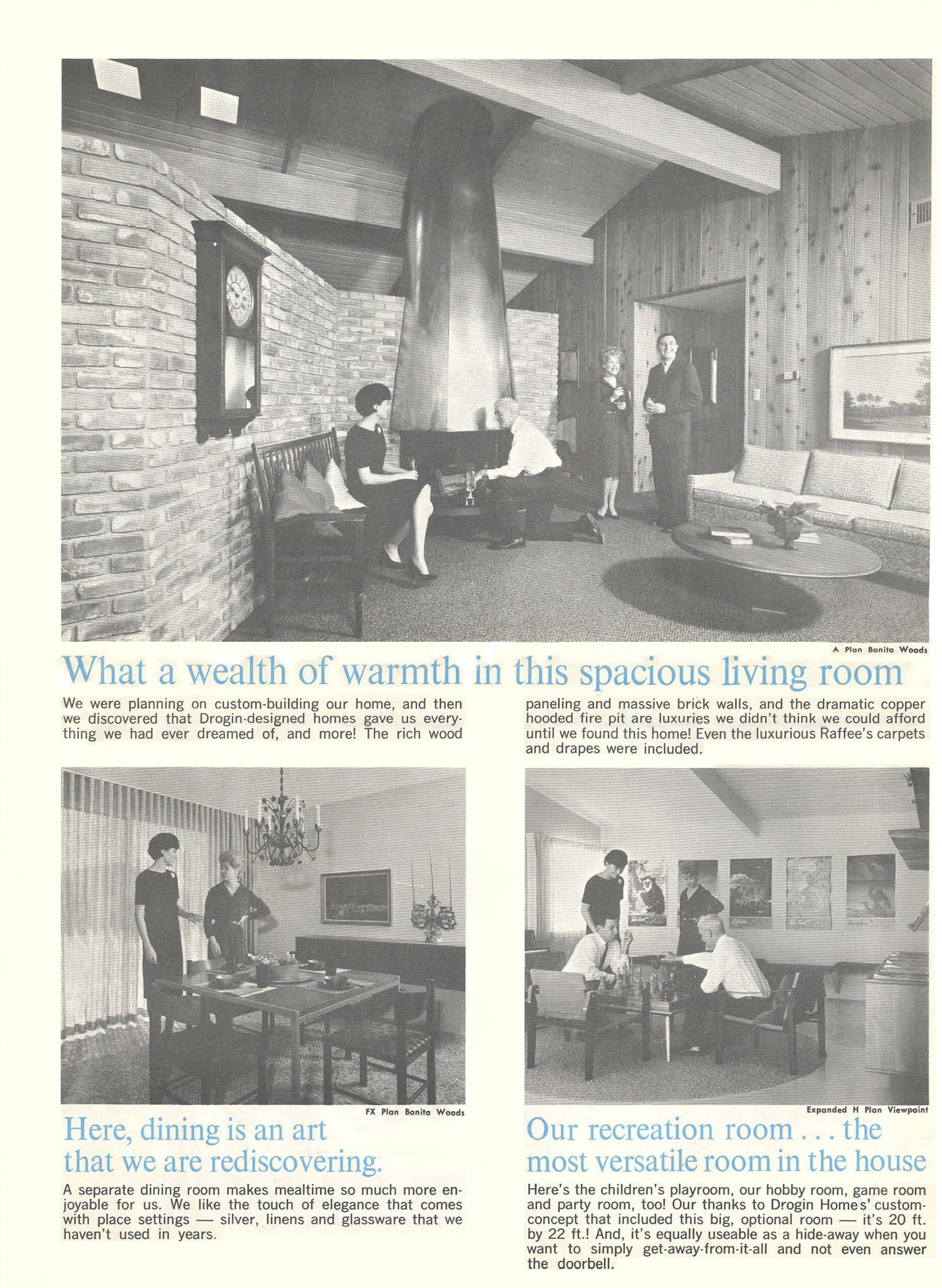 A September 22, 1963 San Diego Union article reports “Another subdivision taking advantage of the rural appeal of the (Bonita) area is Bonita Woods, a development with 73 sites along the slopes on the northern end of the valley being developed by Bonita Woods Construction Co., a Leonard Drogin organization. Bonita Woods also features half-acre sites, many with a view overlook of the valley and the golf course. To keep variety in this project, buyers have a choice of 15 floor plans, including two story models, and each plan features optional expansion variations.